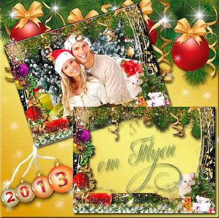 Новогодняя рамка для фото - Пусть этот день счастливым будет, и все сбываются мечты PSD | 67 мб | 4800х3600 | 300 dpi Автор: Туся |