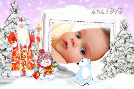 Детская рамка - Дед Мороз, красный нос PSD | 3000 x 4500 | 300 dpi | 59,78 Мб Дизайн ana1979 |