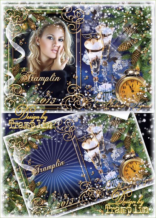 Романтическая Новогодняя рамка – Бокал шампанского Psd | 2490 x 3484 | 300 dpi | 63 MB Автор: Tramplin |