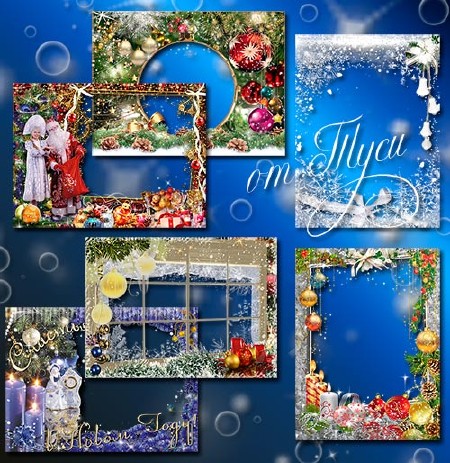 Коллекция новогодних рамок для фото – Я счастья всем от всей души желаю в чудесный праздник Новый год! 6 PNG | 52 мб | 3200х2400 | 300 dpi Автор: Туся |
