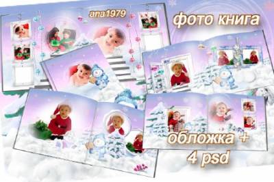 Фотокнига - Веселый снеговик 5 PSD | 1 Обложка и 4 разворота | 7205 x 3543 | 300 dpi | 591,08 Мб Дизайн ana1979 |