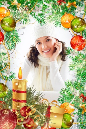 Рамка для фотошопа - Новогодняя свеча PSD | 3000 x 4500 | 300 dpi | 56,44 Мб Дизайн ana1979 |