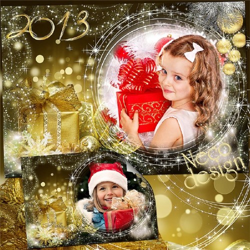 Новогодняя рамка с темным фоном золотым блеском и подарком - Праздничный блеск PSD | 3500x5000 |300 dpi | 138 MB Изящная рамка для Нового года отлично украсит вашу фотографию Автор: Neco |
