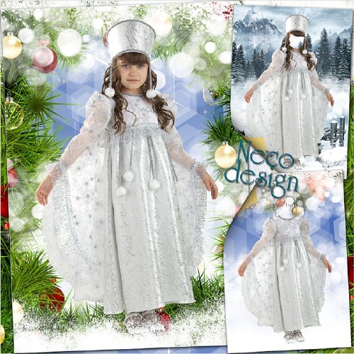 Новогодний детский шаблон - Маленькая Снегурочка в серебряном наряде PSD | 3500x5000 | 300 dpi | 145 MB три варианта фона, многослойный Автор: Neco |