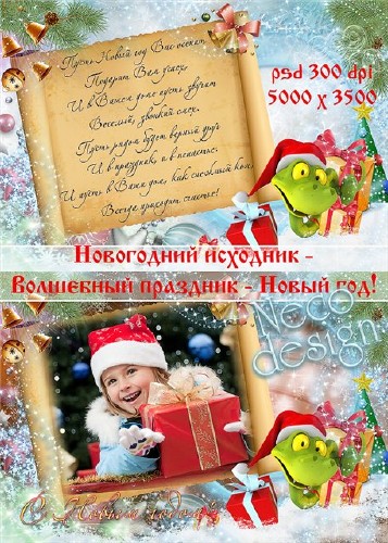 Новогодняя рамка для фотошопа - Стучится в наши двери Новый год PSD | 4340x5768 | 134 Mb Автор: wertyozka |