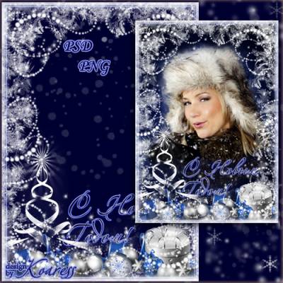 Зимняя поздравительная рамка для фото - Серебристые узоры, серебристый снег PSD+PNG | 3508x4961 | 300 dpi | 74,08 MB Автор: Koaress |