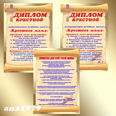 Диплом - Крестная мама PSD и PNG | 3543 x 2480 | 300 dpi | 61.77 Мб Дизайн ana1979 |