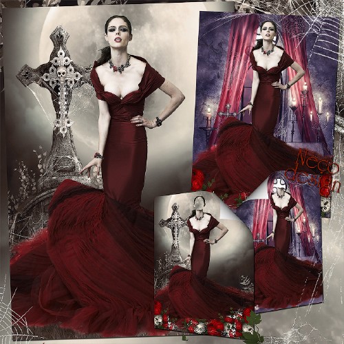 Готический женский шаблон - Королева вампиров PSD | 3500x5000 | 300 dpi | 161 MB Автор: Neco |