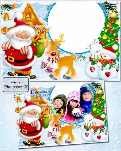 Детская зимняя рамочка для фотошопа – Снежная сказка Дед Мороз, веселые снеговики, олененок, и, конечно же, новогодняя елка – все это атрибуты без которых не обходится Новый год. В рамку можно оформить не только новогодние фотографии, но и фото с зимних прогулок. PSD | 5315х3543 рх | 300 dpi | 173,9 Mб Автор: PhotoshopiХ |