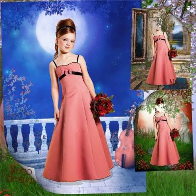 Детский шаблон для девочки в розовом платье с бантиком - Лунная мелодия PSD | 4000x5500 |300 dpi | 251 MB Автор: Neco |