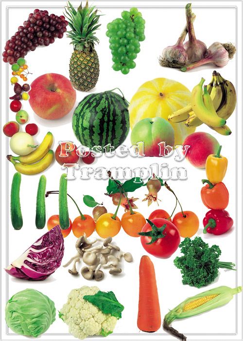 Клипарт – Фрукты и овощи на белом фоне 100 Jpg | 2684 x 1712 | 300 dpi | 102 MB Автор: choice – Tramplin |