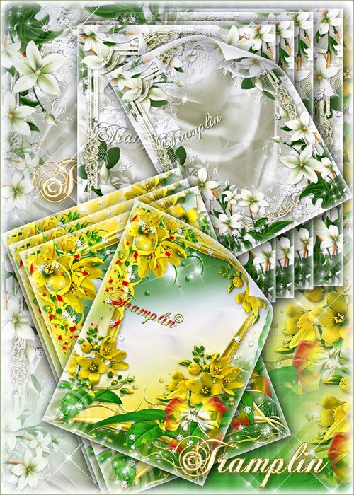 Цветочные рамки для фото – В цветах и поцелуй и нежность 2 Psd | 2110 x 2953 | 300 dpi | 122 MB Автор: Tramplin |