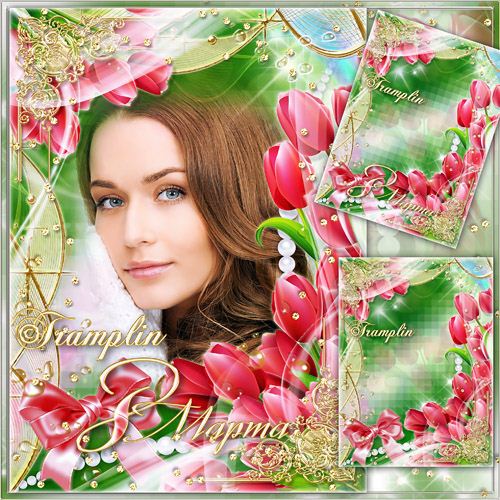 Нежная рамка с тюльпанами на 8 марта – Ты у меня Одна Psd | 2089 x 2835 | 300 dpi | 53,7 MB Автор: Tramplin |