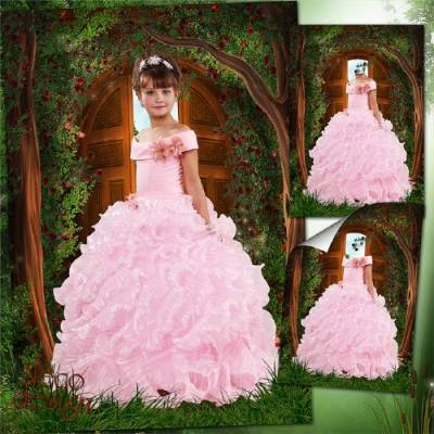 Шаблон для девочки в розовом пышном платье - Хозяйка лесного дома PSD | 3500x5000 |300 dpi | 132 MB Автор: Neco |