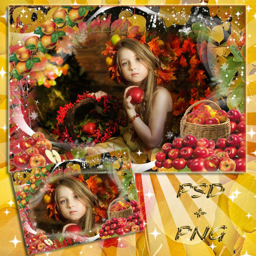 Осенняя рамочка - Созрели яблоки в моем саду PSD + PNG | слои включены | 2362x3543 | 139,53 Мб Автор: Drogdi |