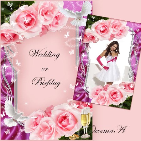 Рамка для фото с розами - Объект моего восхищения PSD | 3543x5315 | 300 dpi | 109 Mb Автор: ОксанаА. Прекрасная рамка с розовыми розами, в которой будет отлично смотреться фото девушки или молодоженов. |