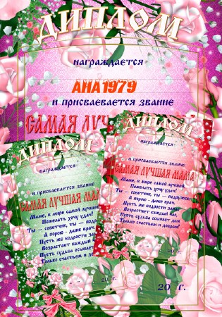 Диплом для фотошопа - Маме PSD | 3543 x 2480 | 300 dpi | 115,33 Мб Дизайн ana1979 |