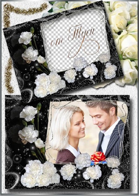 Рамка для фото - Гвоздика белая ты отражаешься звездою яркой в небесах PSD | 18,4 мб | 4800х3600 | 300 dpi | многослойная | слои отключены Автор: Туся |