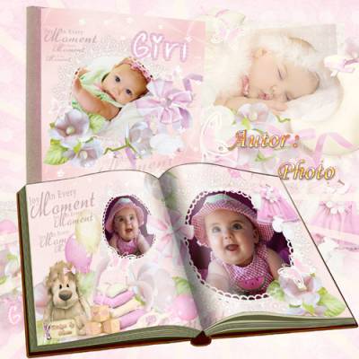 Фотоальбом для девочки - Мой первый год жизни (обложка и 7 разворотов) В альбоме представлены самые важные моменты жизни Вашей крохи: рождение, крещение, мои игрушки, детская комната, мой первый день рождения ,мои ручки и ножки,моё новое платье. Альбом можно использовать как отдельные рамки или напечатать фотокнигой. 8 PSD |300 dpi | 7205 х 3602 | в готовом виде 30смх30см | 760 Мб Автор: Фотка |