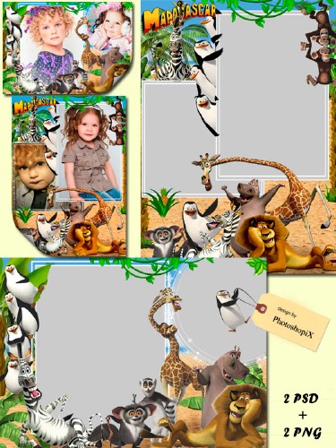 2 Детские рамки с героями мультфильма Мадагаскар – Веселые жители острова 2 PSD + 2 PNG | 3500х2500, 2500х3500 | 300 dpi | 121,5 Mб Автор: PhotoshopiХ |