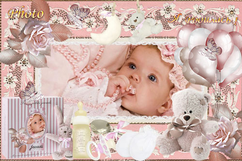 Рамка для девочки в нежно - розовых тонах - Я Родилась PSD , PNG | 300 dpi | 3543 x 2362 | 72 мб Автор : Фотка |