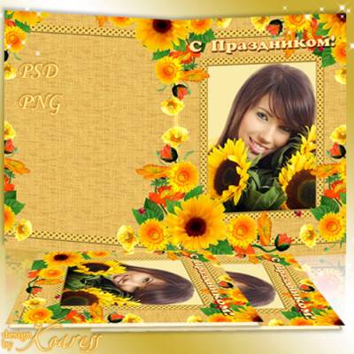 Поздравительная открытка с рамкой для фото - Солнечные цветы PSD, PNG | 5332x3770 | 300 dpi | 148,53 MB Автор: Koaress |