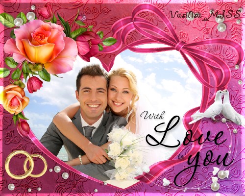Свадебная фоторамка голуби, рамка - сердечко и романтический декор