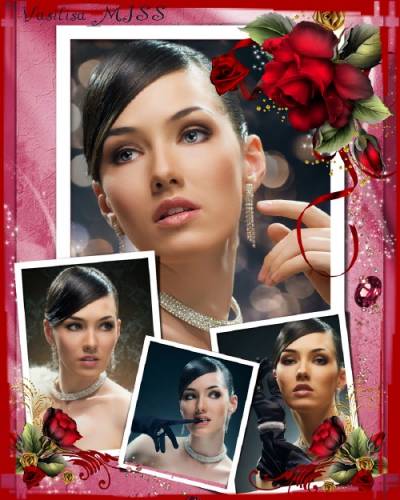 Женская фоторамка с красными розами и блеском - Загадка